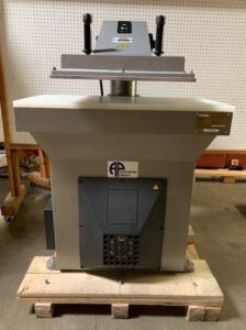 The swing arm clicker is the workhorse for many die cutting applications and also a very capable entry-level machine. We are proud to offer the Associated Pacific Machine APM-SA series of Swing-Arm Clicking Machines. Whether you are looking for an additional cutting machine, a replacement for an old machine, or you are looking to get started in the die cutting industry, the APM-SA27L is the perfect machine for your needs.